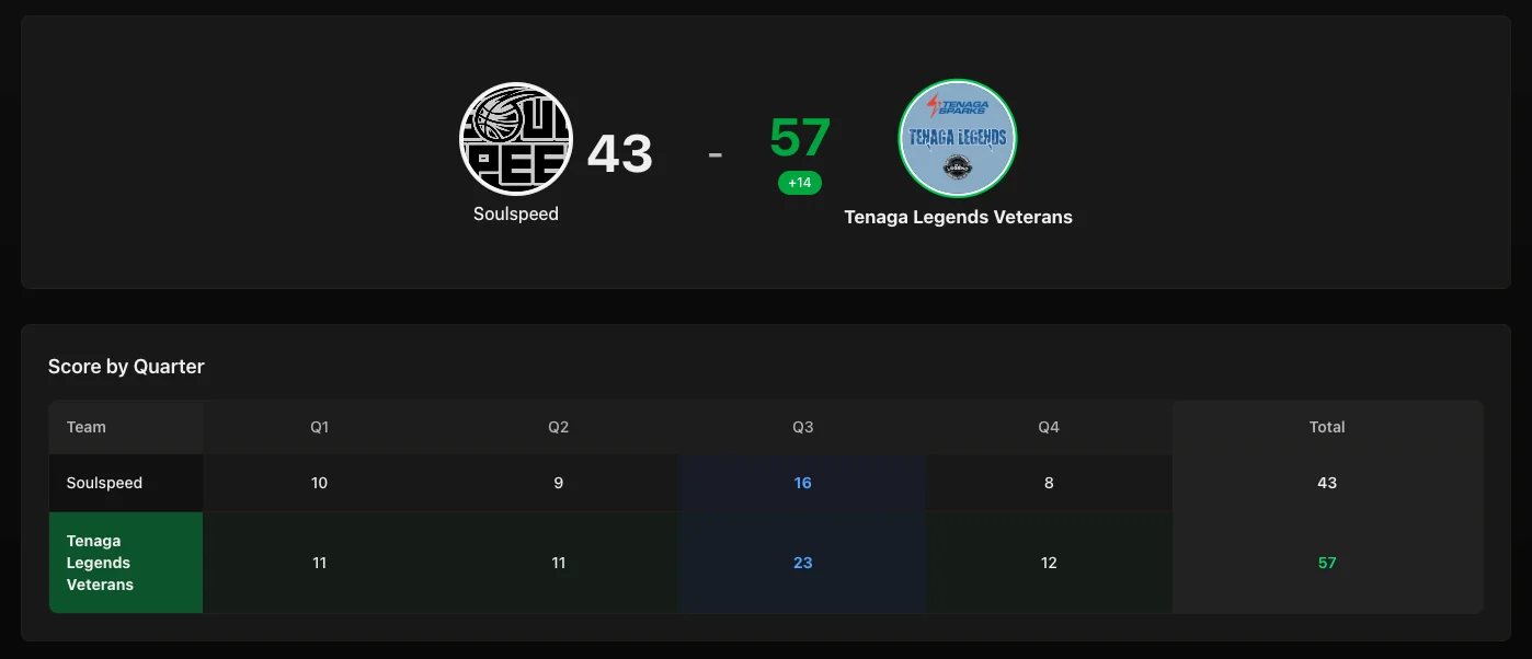 Full-time result ๐ Tenaga Legends Veterans take the win over Soulspeed, 57โ43 ๐ช๐ฅ